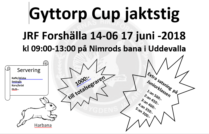 JRF Forshälla inbjuder till Jaktstig Gyttorp Cup 2018 JRF Forshälla 11 jun 2018 0kommentarer