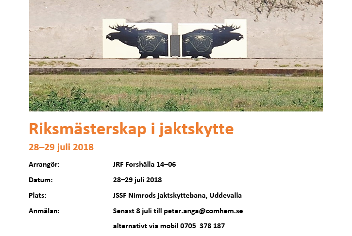 JRF Forshälla har fått förtroendet att arrangera RM i Jaktskytte 2018. Hela inbjudan ligger under Dokument - 2018 JRF Forshälla 27 jan 2018 0kommentarer