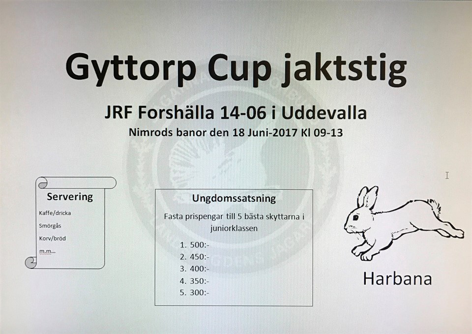 JRF Forshälla arrangerar Gyttorp Cup den 18 Juni 2017. Välkomna till bra tävling/träning inför Jaktstigsfinalen JRF Forshälla 10 apr 2017 0kommentarer
